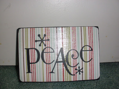These cute blocks were very easy. All I did was paint them black and then modge podged very cute Christmas paper on them. Once the modge podge was dry, I applied the vinyl lettering. So simple, yet so freakin' cute!
